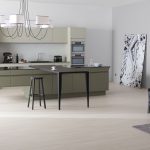 Joliment galbés, les pieds de la cuisine Alice évoquent ceux des meubles du style Louis XV. Tendus, légèrement galbés, ils portent le plan de table, une avancée de l’îlot, ceux de la table basse, et de la commode.