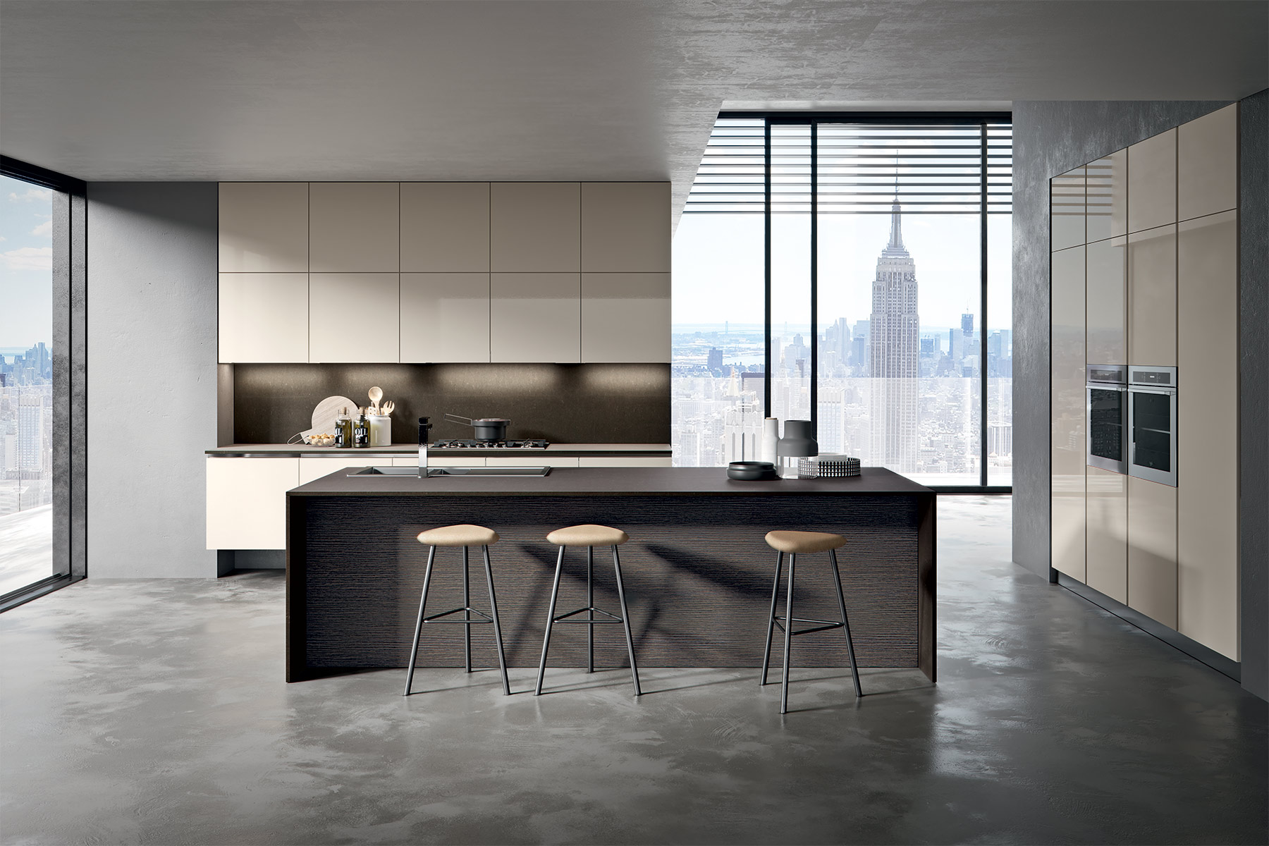 Forte dans le caractère, Kappa est une cuisine à la portée de tous qui, avec ses modules équipés, les solutions fonctionnelles et les larges espaces de rangement, interprète le besoin d’ambiances de plus en plus articulées et représentatives, correspondant aux nouveaux styles de vie contemporains.