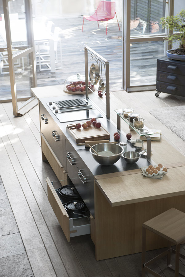 Métisse est un atelier de cuisine, dans le dessin comme dans la conception. Thibault Desombre a joué sur ces codes de l’atelier, pour faire de Métisse une cuisine qui supporte le désordre, qui ne soit pas aseptisé , à l’inverse des cuisines de style laboratoire. Implantée en îlot, la cuisine se fait conviviale, comme conçue pour le plaisir de cuisiner et de partager.