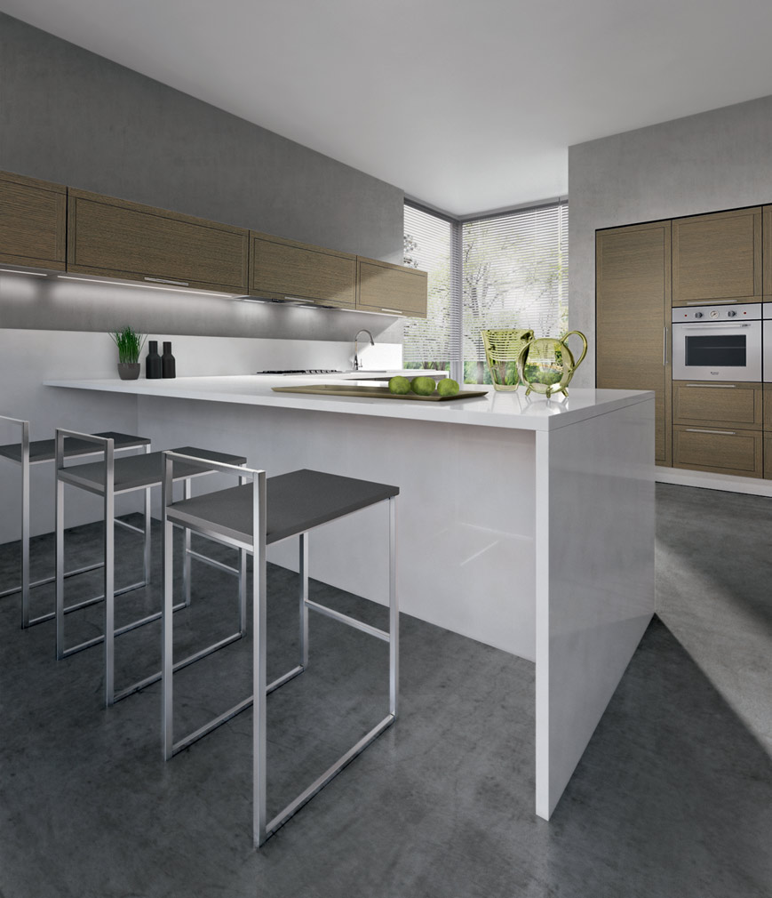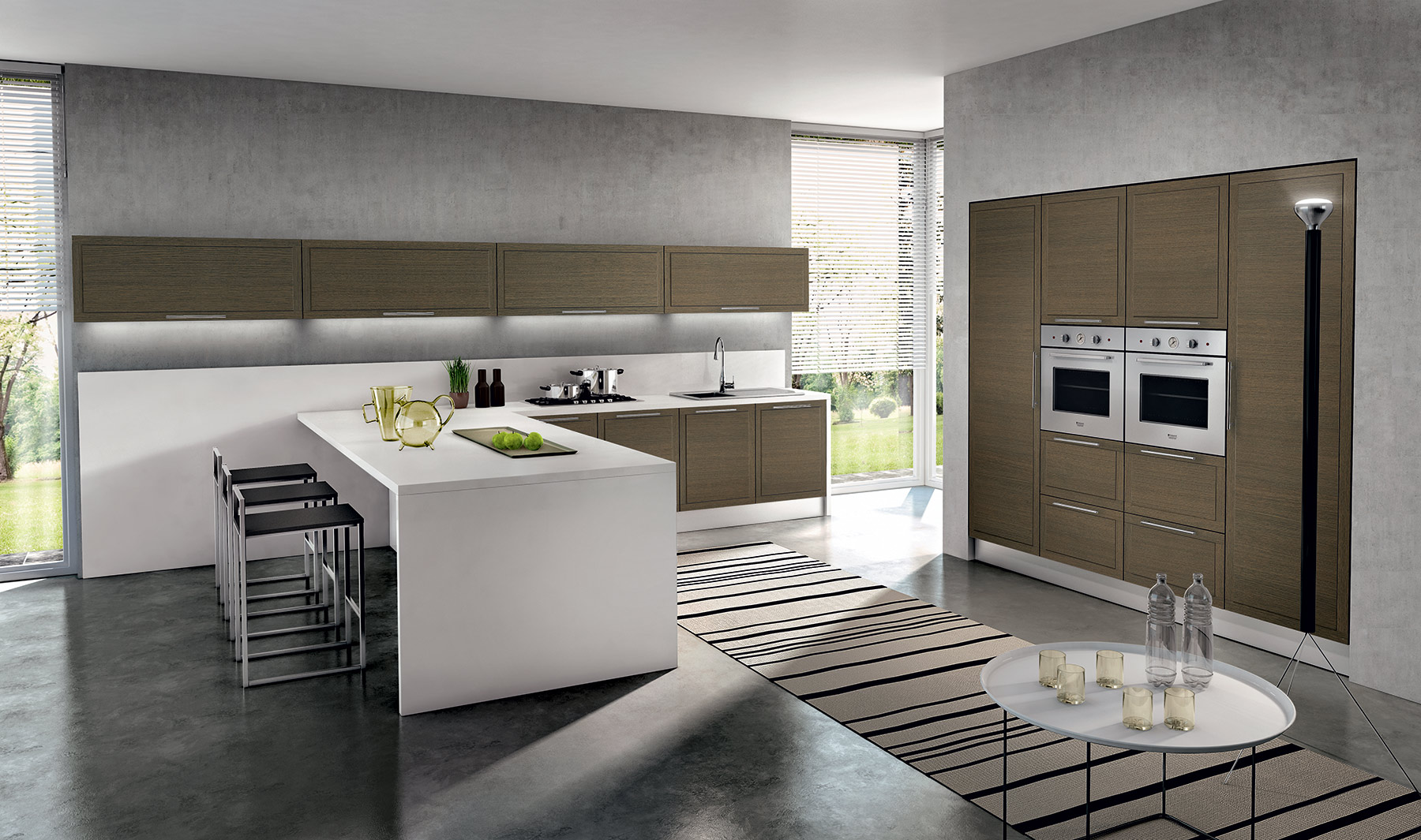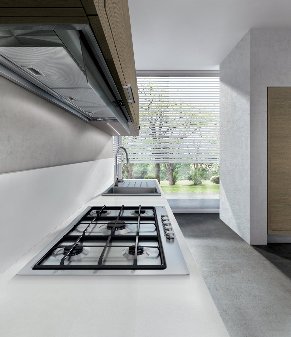 Une cuisine aux solutions innovantes qui sait conserver un lien avec la tradition tout en restant actuelle. La dimension classique transparaît dans le design des portes et dans le choix d’un cadre massif, tout le reste – îlot, meubles et accessoires – parle une langue contemporaine et multifonctionnelle.