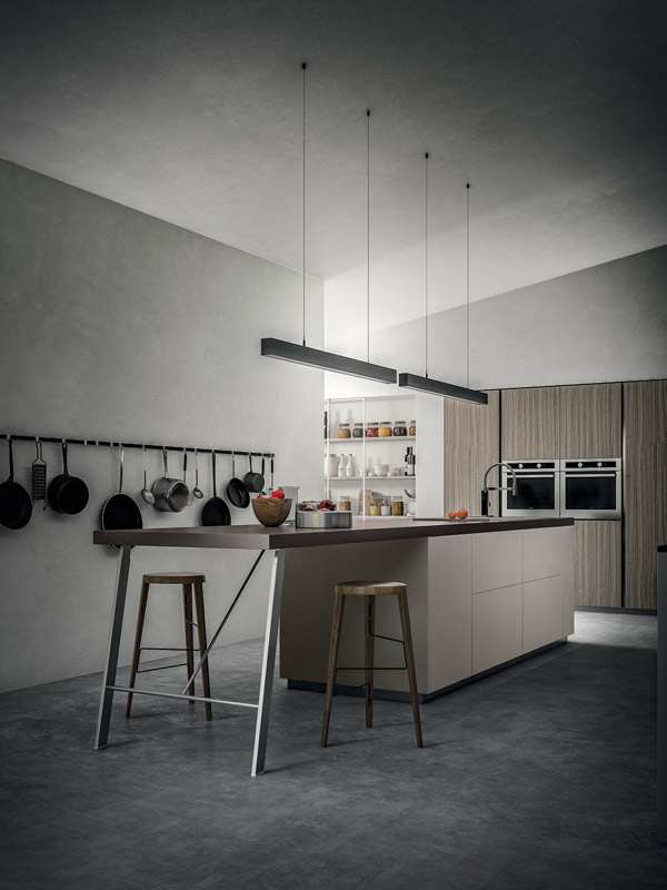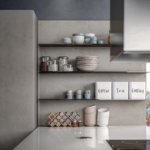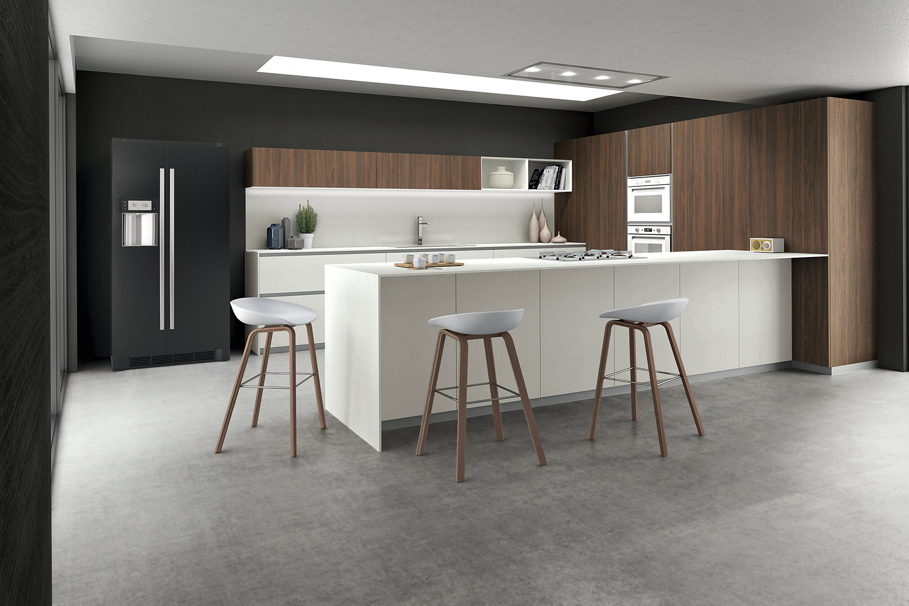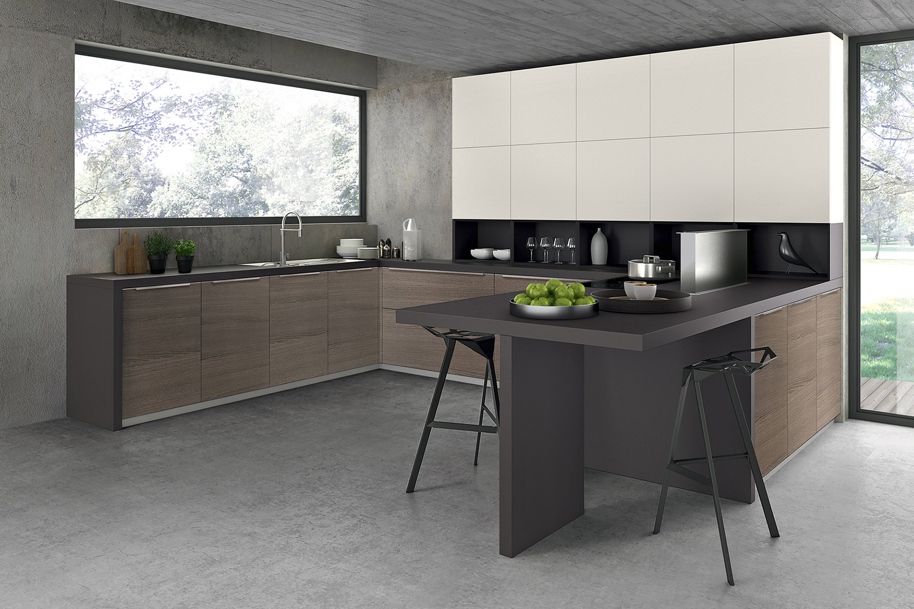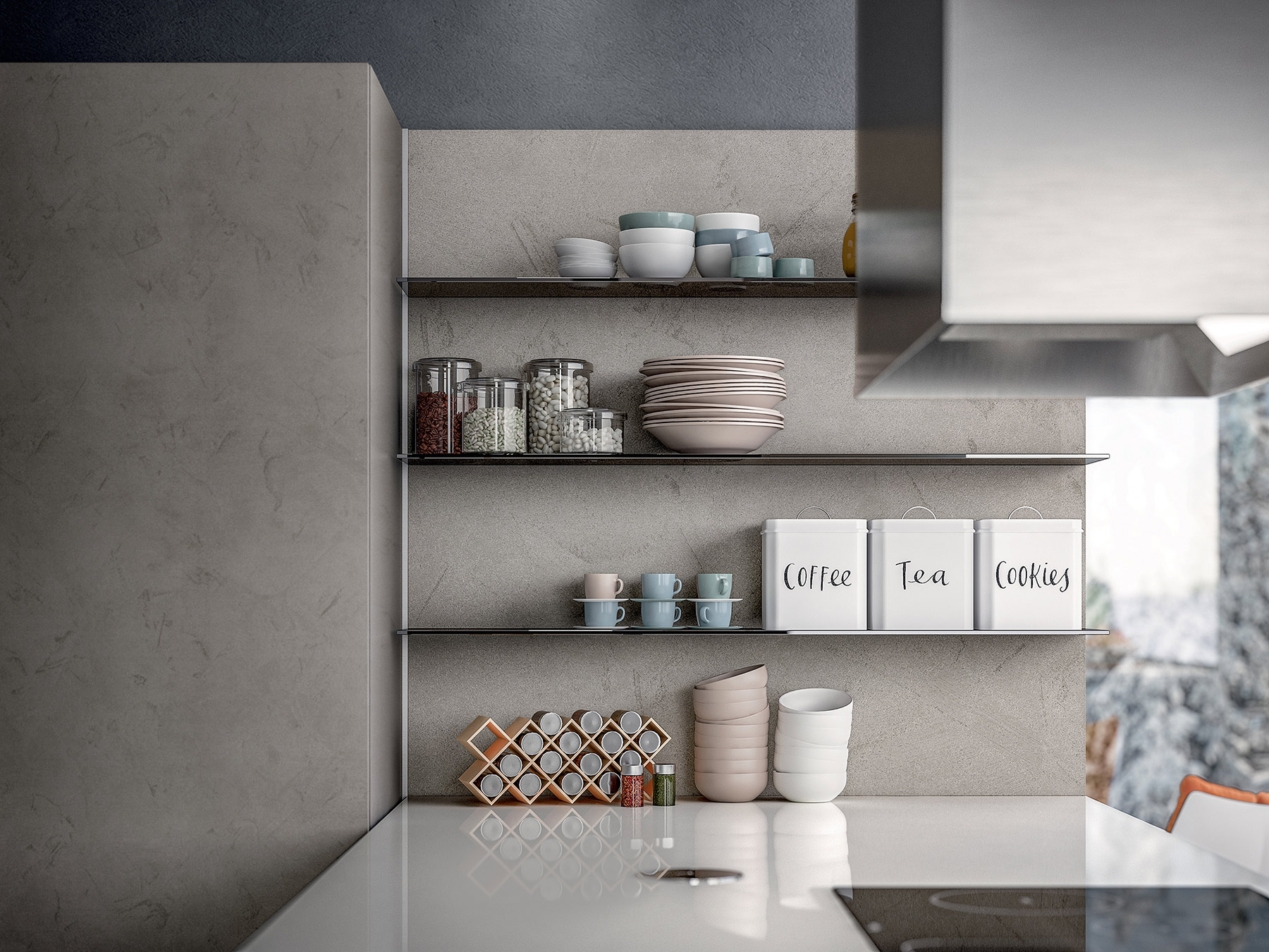 Modèle avec porte d’une épaisseur de 22 mm qui introduit des matériaux innovants adaptés à l‘utilisation dans l’ambiance cuisine comme le mélaminé thermostructuré et le Maxximatt/Maxxigloss verni brillant et mat de production italienne. Une alternative moderne au bois plaqué ou au laqué pour permettre à tous d’avoir une cuisine raffinée et contemporaine sans négliger la qualité et la résistance à l’usure.