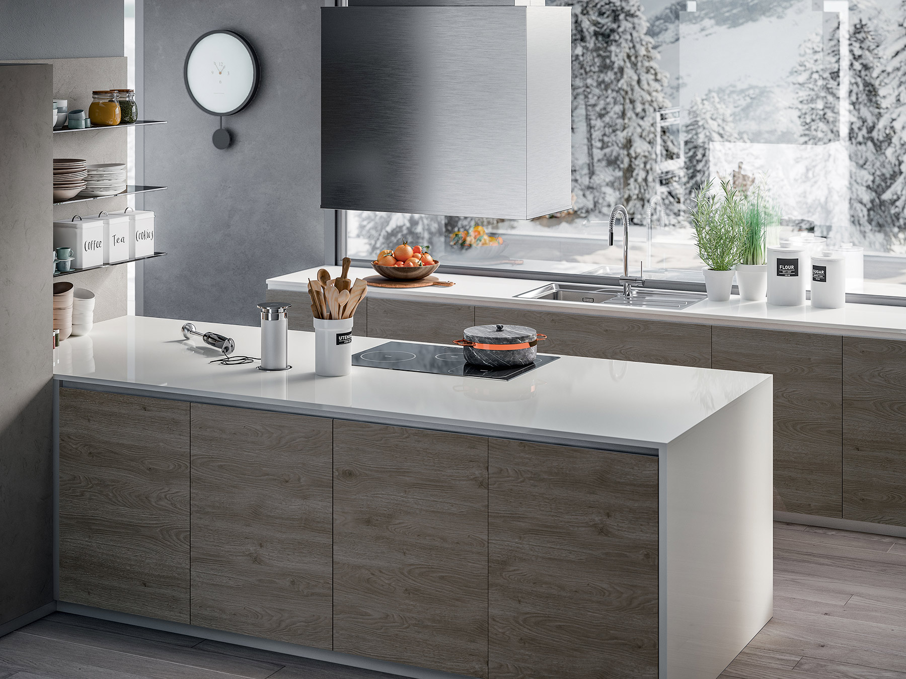 Une alternative moderne au bois plaqué ou au laqué pour permettre à tous d’avoir une cuisine raffinée et contemporaine sans négliger la qualité et la résistance à l’usure