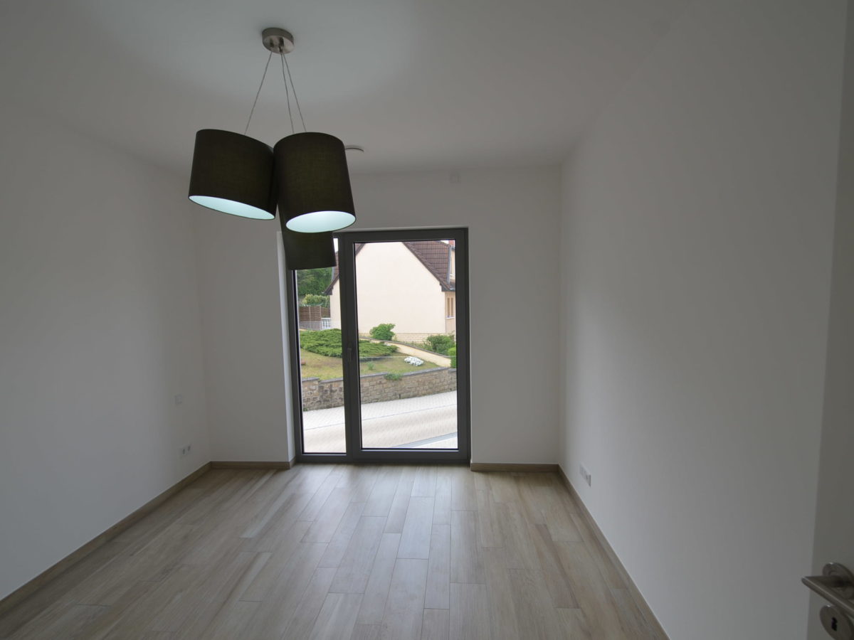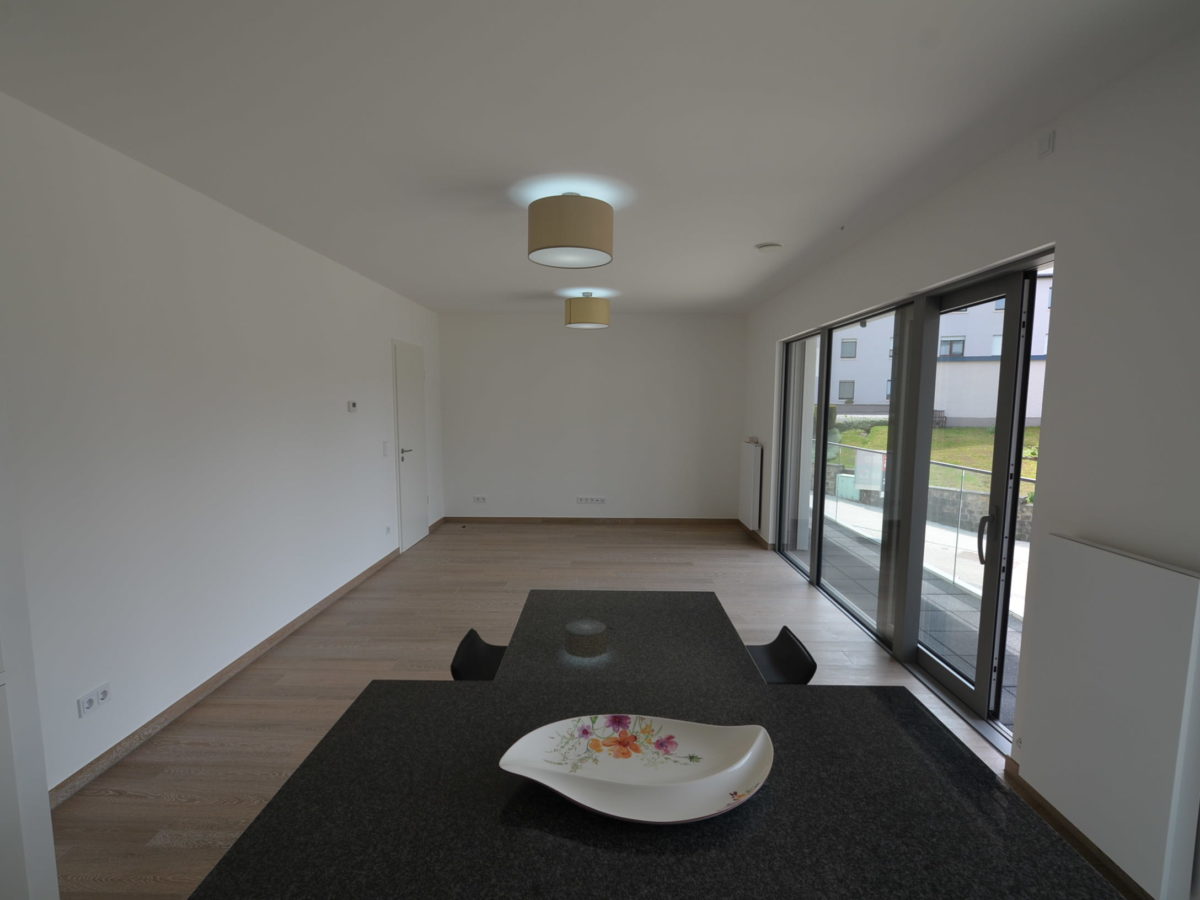 qui donne accès au balçon. Deux chambres avec sol en parquet massif, salle de douche, WC séparé, hall d’entrée avec vestiaire intégré, débarras avec raccordement pour machine à laver.